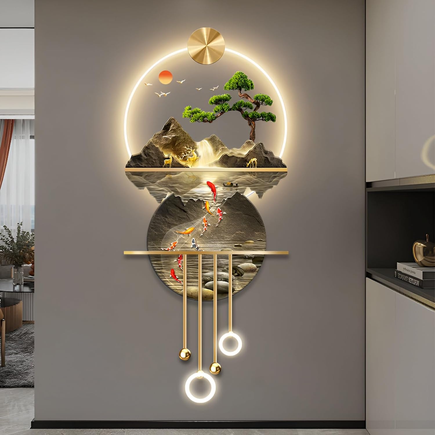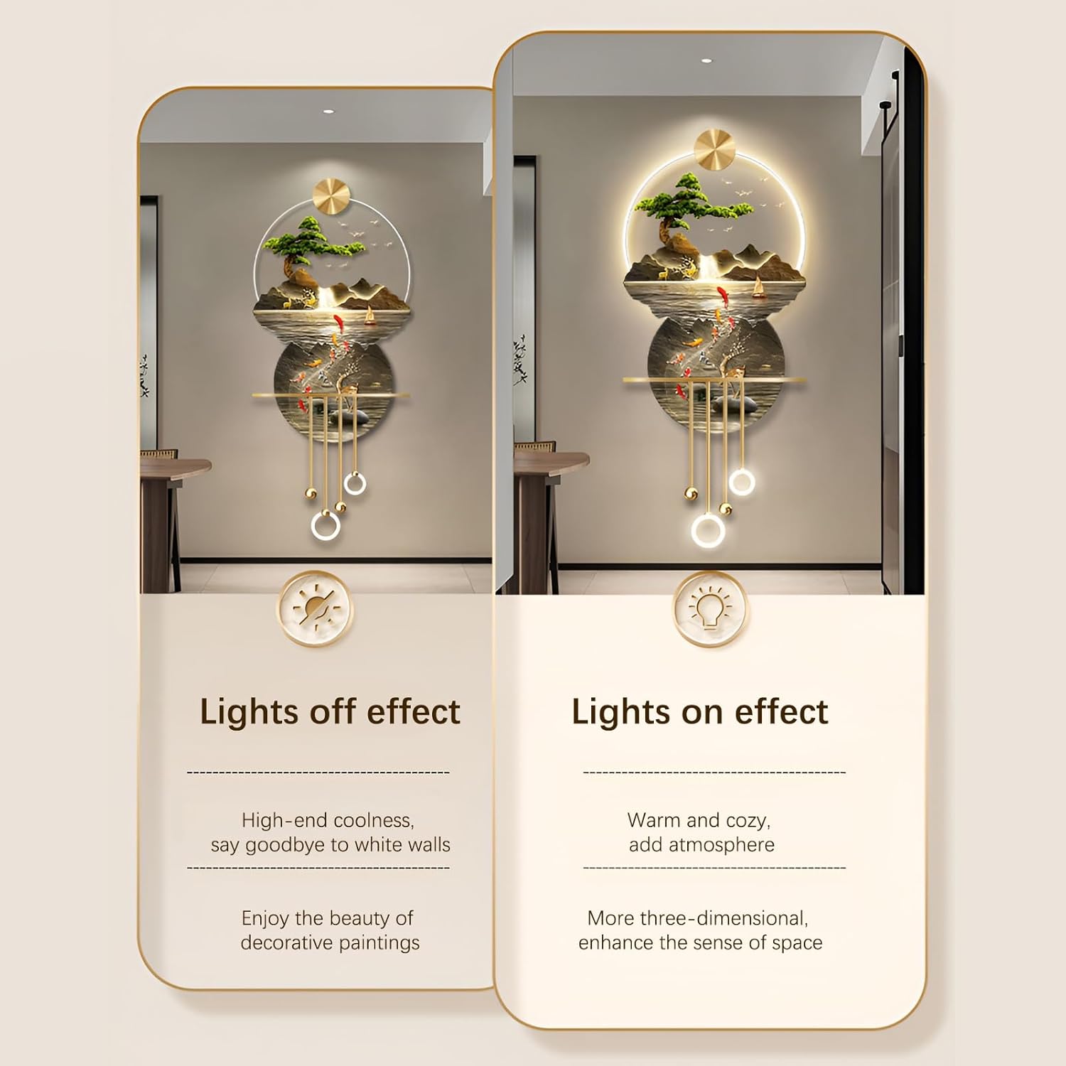 3D Wall Art Decor with Led Lights, Plug-in Power Supply Modern Art Wall Decor Chinese Creative Landscape Picture Wall for Home, Entrance Corridor, Study(Stylle A,19.69×47.24in)